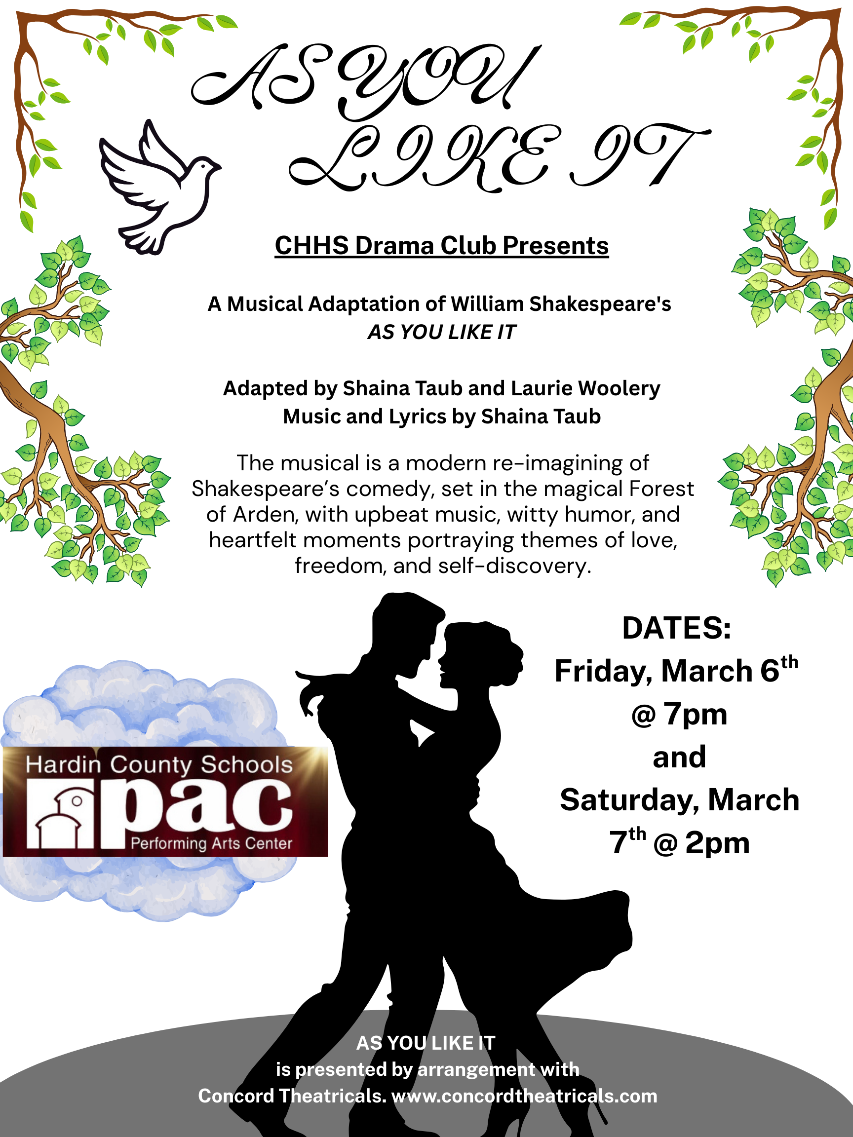 Central Hardin High School Drama Club - As You Like It A Musical Adaptation of William Shakespeare's AS YOU LIKE IT Adapted by Shaina Taub and Laurie Woolery Music and...